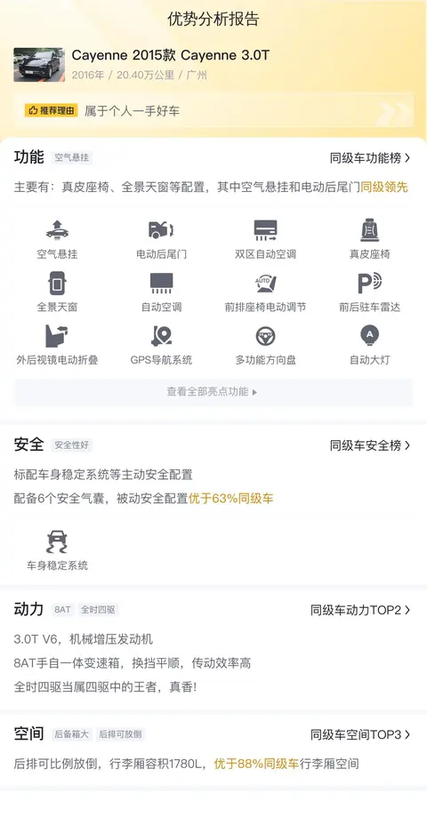 综上所述的新车含税价、用车成本、市场行情、优势分析、同款比价等数据仅供参考。在配置部分,因为二手车非标品,车辆可能会存在配置改装的情况,具体车况信息需要线下结合车辆实际情况进行综合参考。