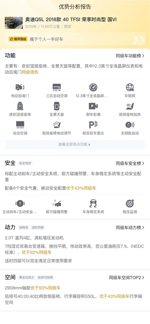 综上所述的新车含税价、用车成本、市场行情、优势分析、同款比价等数据仅供参考。在配置部分,因为二手车非标品,车辆可能会存在配置改装的情况,具体车况信息需要线下结合车辆实际情况进行综合参考。