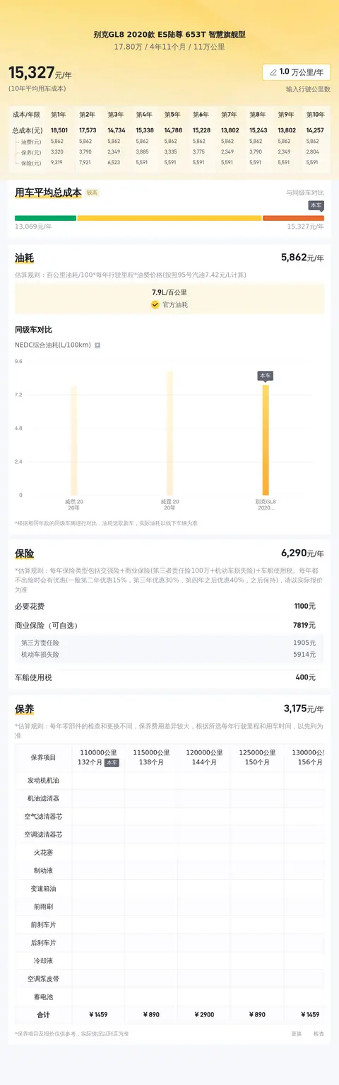在不考虑其他费用大幅波动的情况下,这辆车10年的平均用车成本大约为15,185元/年。然而,受多种因素的影响,实际费用可能会有所不同。这一估算仅供参考,具体费用还需根据个人使用习惯、地区差异、车况维护等因素进行综合评估。