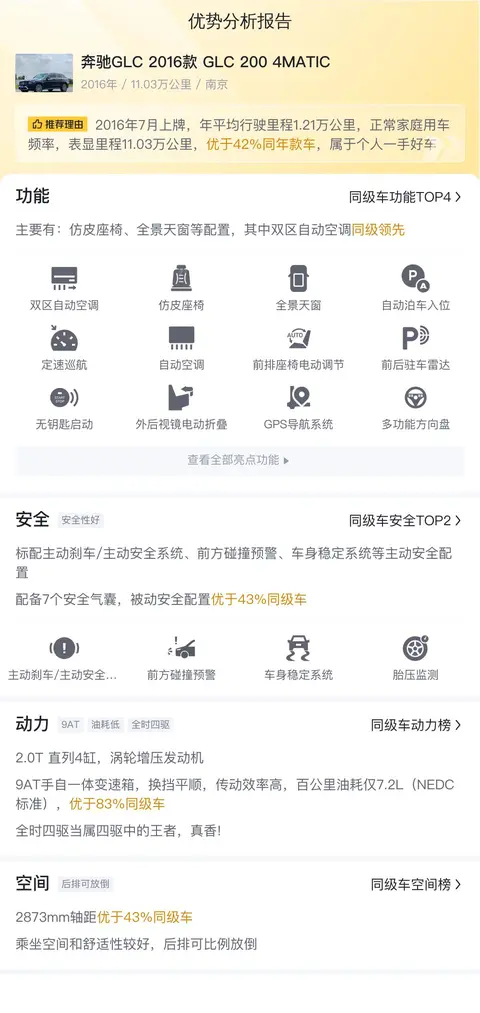 综上所述,这辆二手奔驰GLC以其卓越的车况、亲民的价格、豪华的配置和强劲的性能,成为了一款值得推荐的豪华SUV。在购车过程中,消费者应重点关注车辆的车况、配置、性能、市场行情和用车成本等因素,做出明智的选择。同时,建议消费者在购买前进行实地查看和试驾,确保车辆状况符合个人需求和期望。
