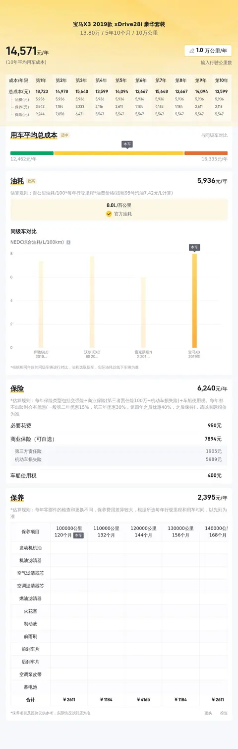 经过懂车帝的大数据分析和精确计算,我们得出了一个权威的结论:这辆车的10年平均用车成本约为13,567元/年。这一数字充分考虑了车辆使用过程中的各种费用,如油费、保养费、保险费等,为潜在车主提供了全面而准确的成本预估。在选择车辆时,除了购买成本外,日常使用成本也是不容忽视的重要因素。懂车帝始终致力于为消费者提供最可靠的数据支持,帮助大家做出更明智的购车决策。选择这辆车,意味着您将在未来十年内享受到相对较低的用车成本,这无疑为您的出行生活增添了一份经济实惠和安心保障。