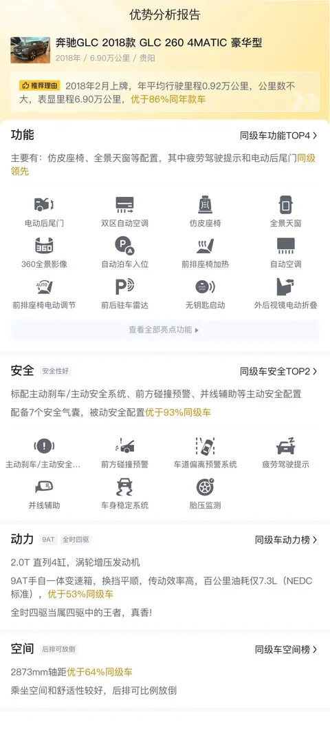 如果您正在寻找一辆性能卓越、配置丰富且价格实惠的豪华SUV,那么这款奔驰GLC 2018款 GLC 260 4MATIC 豪华型绝对是一个不错的选择。它不仅拥有出色的驾驶性能和舒适的乘坐体验,而且在价格上也具有一定的优势。当然,在购买二手车时,我们还需要考虑车辆的实际状况和个人需求等因素。希望这篇文章能够为您提供一些有用的参考信息,帮助您做出更加明智的购车决策。