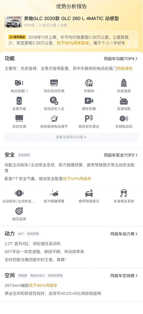 车辆版本:奔驰GLC 2020款 GLC 260 L 4MATIC 动感型