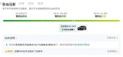 在市场行情方面,当前这款途昂 2017款 330TSI 两驱豪华版的二手车价格较为平稳。根据多项影响因素分析,包括车辆的里程、车龄、过户次数及颜色等,这些因素共同作用于车辆的评估价值。具体评估如下:里程,该车里程为10万公里,多于均值0.3万公里,影响金额约为-900元;车龄,该车车龄为7年10个月,多于均值0.2年,影响金额约为-3600元;过户次数,该车过户次数为1次,多于均值0.5次,影响金额约为-1600元;颜色,该车颜色为其他,影响金额约为-689元。考虑上述因素后的估价为10.7万元,误差范围为2.66万元,需要注意的是,实际价格受车辆状况和其他市场因素的影响可能会有所不同。