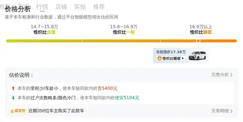 根据懂车帝的大数据分析,别克GL8 2020款 ES陆尊 653T 舒适型的二手车市场价格区间为17.70万元到22.16万元,而本车的报价为17.38万元,相较于市场价,本车的售价较低,具有很好的性价比,是一个不错的选择。