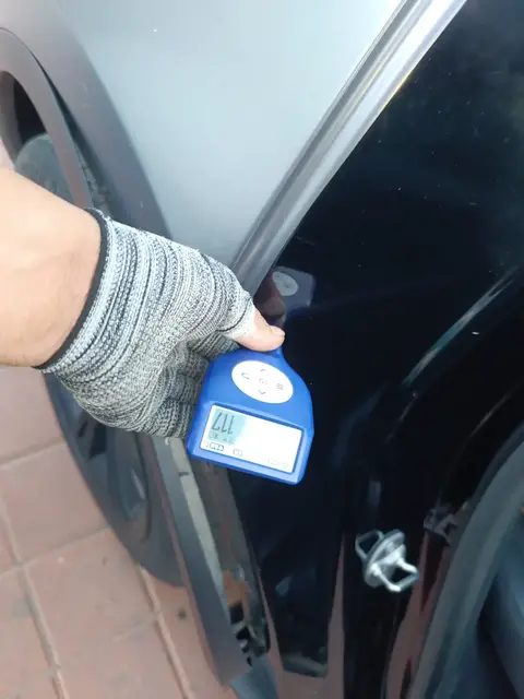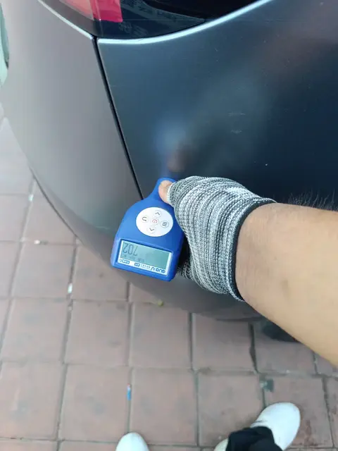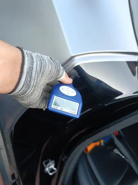 在外观检测中,这辆车在左后翼子板和右后翼子板处,都有喷漆修复的状况。