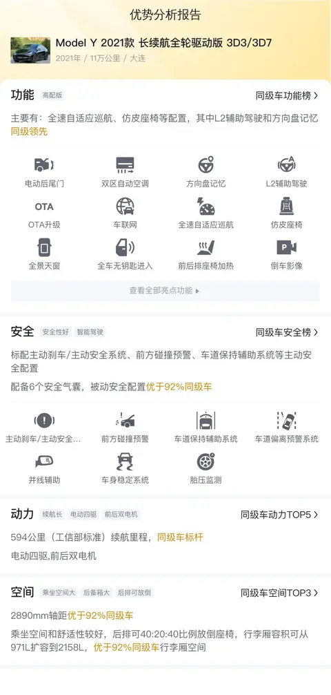 为了让消费者买的放心,用的安心,懂车帝针对Model Y 2021款 长续航全轮驱动版 3D3/3D7进行了多项检测,所以它具有完整的全车深度检测报告。