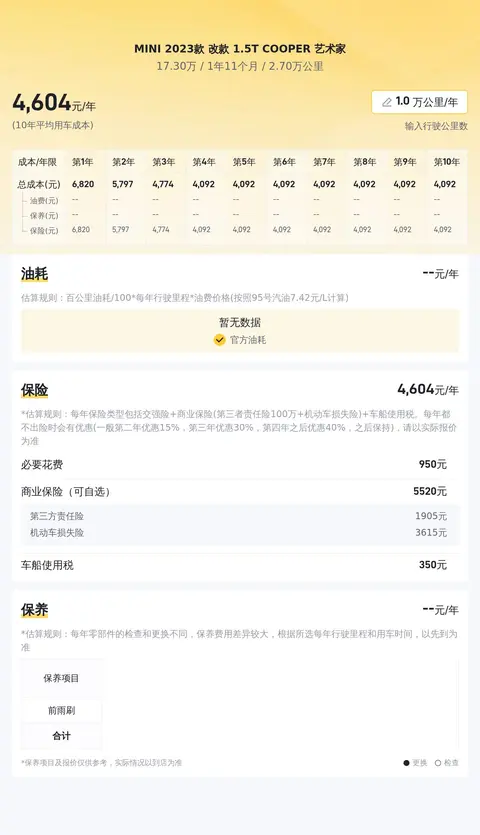 10年平均用车成本是5630元/年,与同级别车相比适中,燃油经济性和保养费用合理,适合日常使用和长途旅行。