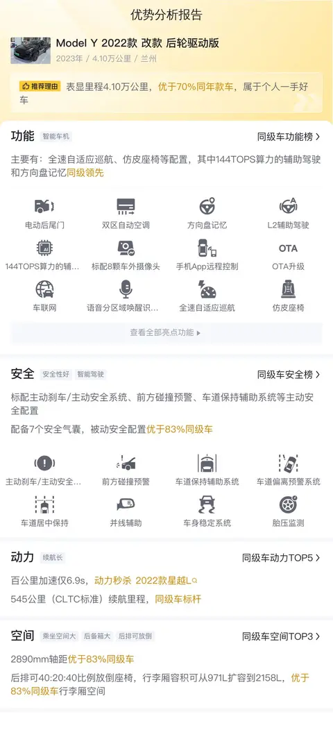 综上所述的新车含税价、用车成本、市场行情、优势分析、同款比价等数据仅供参考。在配置部分,因为二手车非标品,车辆可能会存在配置改装的情况,具体车况信息需要线下结合车辆实际情况进行综合参考。