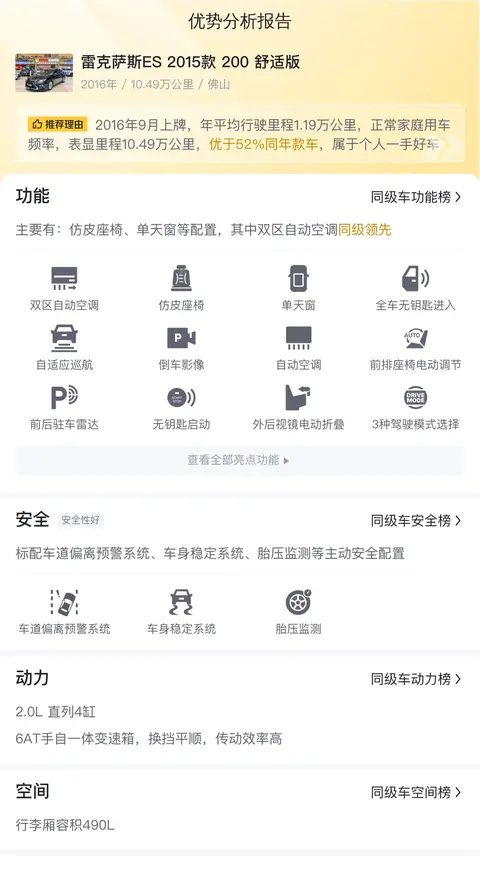 2、配置不够丰富:相比同价位其他豪华品牌车型,雷克萨斯ES 2015款 200 舒适版的配置相对简单。