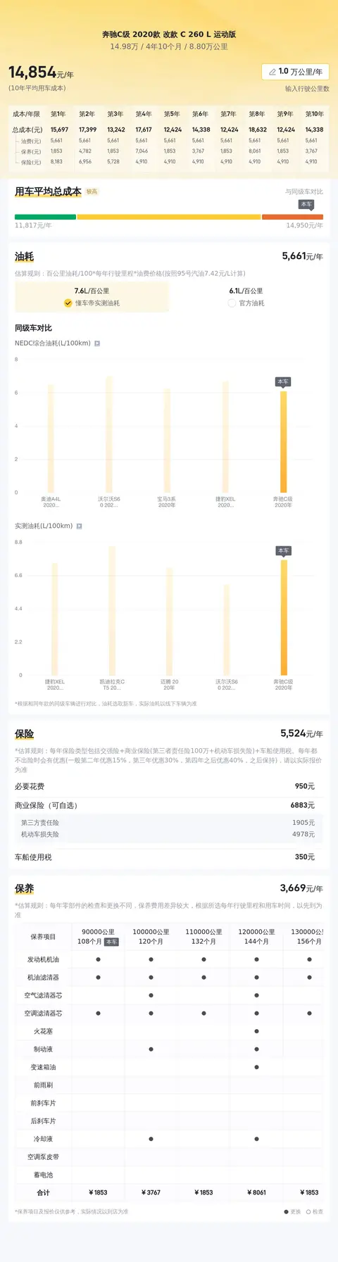 养车成本方面,按一年行驶一万公里计算,该型车每年燃油、保险及保养的综合用车成本约13678元,具体费用要看用车频率及使用环境而定。