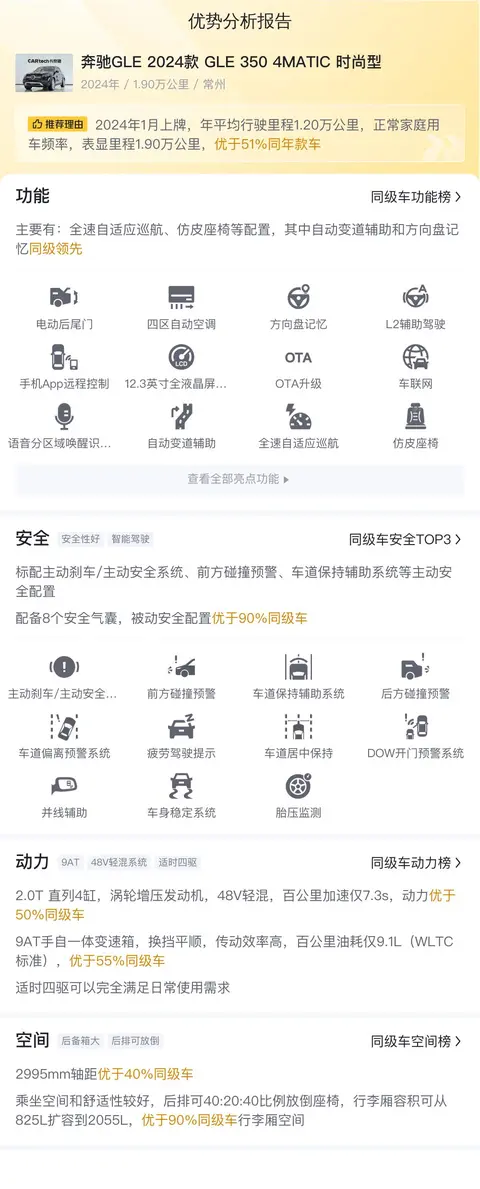 据估算,奔驰GLE 2024款 GLE 350 4MATIC 时尚型的用车成本是11988元/年,60多万的车,每年一万出头,属于正常花费。