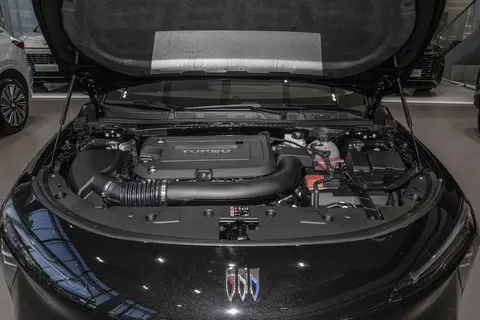 别克君越车身尺寸长×宽×高分别为:4996x1866x1475mm,轴距为2905mm。车头上方依旧是别克车标搭配两侧全LED大灯组,下方大面积“八字形”进气格栅。来到车身侧面一根上扬的腰线贯穿到溜背式车尾,往下一根内凹设计搭配245/45 R19的轮胎。车尾上方一个小鸭尾,往下别克彩色车标搭配下方贯穿式尾灯组,最下方一根黑色包围贯穿着双边共双出的真排气,整个外观看起来很有设计感。