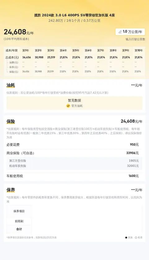 综上所述的新车含税价、用车成本、市场行情、优势分析、同款比价等数据仅供参考。在配置部分,因为二手车非标品,车辆可能会存在配置改装的情况,具体车况信息需要线下结合车辆实际情况进行综合参考。