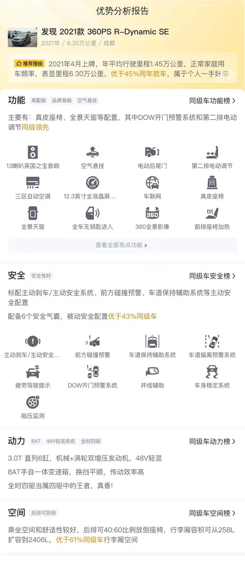 在同级别车型中,发现2021款360PS R-Dynamic SE在配置、动力、空间等方面都表现出色,但也有部分车主反映其油耗偏高。