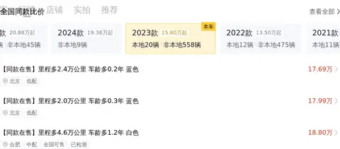 当前市场上,这款车型的二手车价格大约在20.62万到24.56万元左右。需要注意的是,具体的成交价格会受到车辆状况等因素的影响。接下来,我们将为您展示这款车在全国市场上的在售情况,以便您更好地了解其价格行情。