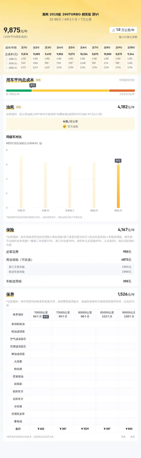 这辆雅阁 2018款 260TURBO 精英版 国VI,车源地深圳,2021年7月在深圳上牌,虽说是2018款的车,但其实距今也只行驶了7万公里,年平均行驶里程也只有1.7万公里左右,抛开保养记录不谈,从里程数上看,也算是一辆保养良好的家庭用车了。车身为白色,目前新车指导价18.98万,而该车现在报价仅为10.96万,足足便宜了8万块,首付3万多就可以开回家哦~