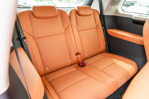 座椅更是亮点,每一排都像 “头等舱”。第一排的主驾有 6 向电动调节和记忆功能,副驾是 4 向电动调节,加热、通风全都有,冬天不冻屁股,夏天不闷汗,日常通勤的幸福感直接拉满。第二排是独立座椅,还带小桌板和吸顶屏,不管是看电影还是临时办公都方便。让人惊喜的是第三排,座椅采用 7 层结构设计,面料是婴儿级有机硅材料,触感柔软亲肤,靠背还能 10 度自由调节。更贴心的是,副驾后侧的小桌板可以通过语音指令自动调节位置和角度,确保用餐、办公时的舒适性。