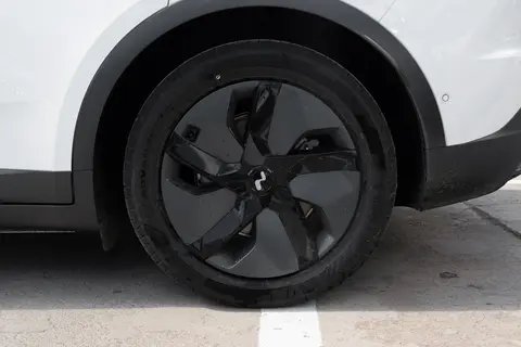 转到车身侧面,典型的溜背轿跑风格令人眼前一亮。前长后短的悬架设计与小比例车窗相得益彰,不仅展现出流畅的线条,还营造出一种跨界的独特神韵。新车配备了无框车门,这一设计元素无疑为其增添了几分时尚与豪华感,每次开门关门,都能成为街头的焦点。隐藏门把手的设计,不仅使车身外观更加简洁流畅,还能有效降低风阻系数。此外,后排隐私玻璃、低风阻轮毂和侧摄像头传感器等配置,也都进一步提升了车辆的整体质感与科技感。值得注意的是,虽然该车未搭载高阶智驾激光雷达,但这并不影响它在外观设计上的出色表现。