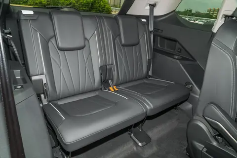 座椅布局方面,新款揽境有 6 座和 7 座两种选择,能根据家里人数灵活选。6 座是 2+2+2 排列,第二排是两个独立座椅,填充软硬适中,面料透气,夏天久坐也不闷,空间充裕不挤。冬天能开加热,大概 30 秒就有暖意,加热档位能调,满足不同人的温度需求;夏天有通风,微风从座椅下方出来,风量柔和,不闷热,扶手能调高低,表面包了皮质材料,摸着舒服,乘坐体验不错。7 座是 2+3+2 布局,第二排三个座椅能按 4:6 比例折叠,操作简单省力,中间座椅放倒后能当扶手箱,里面空间规整,方便放水杯和零食。第三排空间对身高 175cm 以下的人挺友好,腿部不挤,头部有一拳左右空间,座椅靠背角度能微调,能找到更舒服的坐姿。要是需要装婴儿车、露营装备或者不少行李箱,把第三排座椅完全放倒,后备箱容积能扩展到近 1000 升,放倒后的座椅和后备箱地板基本平,放东西没阻碍,能轻松装下需要的物品。不管选哪种布局,日常家用或出去玩,空间需求都能满足。