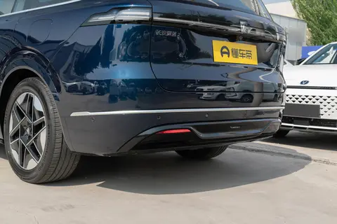 首先,外观设计这个维度,说实话现在市面上新出的新能源大SUV都很拼,谁也不想输气场。深蓝S09(品技术)第一眼给我的印象其实就俩词:大气和精致。车身有5.2米多,轴距3.1米,远看那种修长感、厚重感和很多合资D级SUV都不输。前脸的线条很有张力,大尺寸格栅看起来挺有攻击性,但不会显得夸张。实际站在车前面,能感觉到那种棱角分明、细节丰富的设计,尤其灯组的造型很有科技感,晚上点亮以后的效果很出彩。格栅的造型经过了镂空和立体处理,也没有那种“纯电车没进气格栅就很假”的违和,反而多了一些运动气息。灯光部分是全LED的,近远光分体,照明效果挺好,日常城市夜路、高速都能照顾到。侧面轮廓线条比较干练,21寸大轮毂配足了气势,悬浮式车顶和隐藏式门把手很加分,整体显得新潮而不浮夸。车尾也是现在流行的贯穿式尾灯,尾部造型层次分明,不会觉得臃肿,点亮后辨识度很高。整个尾部都很简洁,用料和细节处理也挺细腻,双边共两出的排气口设计虽然主要是装饰,但搭配运动包围,还是让整台车的氛围很到位。