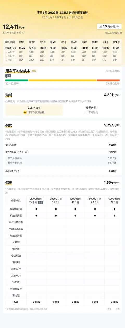 据估算,宝马3系 2023款 325Li M运动曜夜套装的用车成本较低,因为同级车的最低用车成本是11469元/年,最高是17798元/年,宝马3系 2023款 325Li M运动曜夜套装是12478元/年,所以较低。