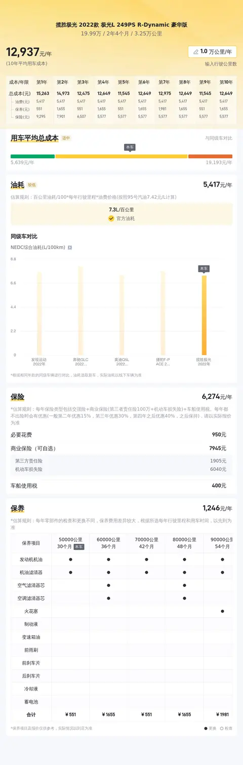 综上所述的新车含税价、用车成本、市场行情、优势分析、同款比价等数据仅供参考。在配置部分,因为二手车非标品,车辆可能会存在配置改装的情况,具体车况信息需要线下结合车辆实际情况进行综合参考。