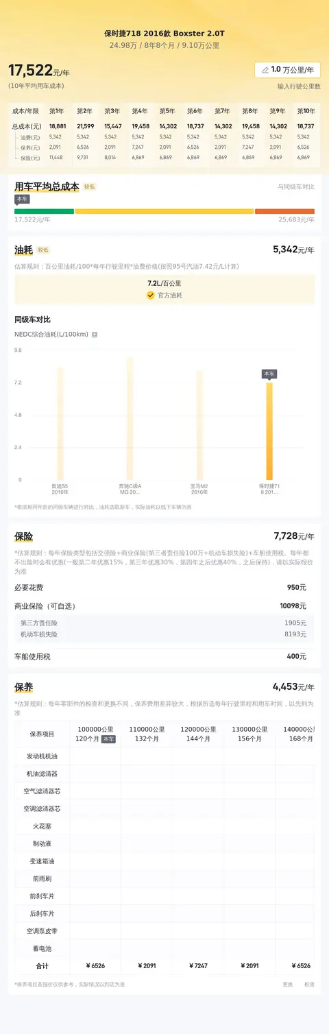 今天我们要看的这台保时捷718是2016款Boxster 2.0T,2016年11月上牌,白色车身,里程9.1万公里,四川绵阳牌照,有4次过户记录。这台车新车含税价65.23万,目前二手报价24.98万。