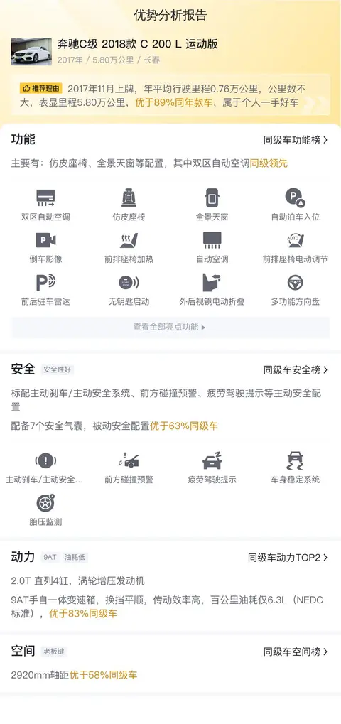 车况如此优秀的二手奔驰C级2018款 C 200 L 运动版,市场价格在13.5万左右,相较于新车含税价为38.32万来说,现在的价格非常诱人,毕竟他的行驶里程只有5.8万公里。