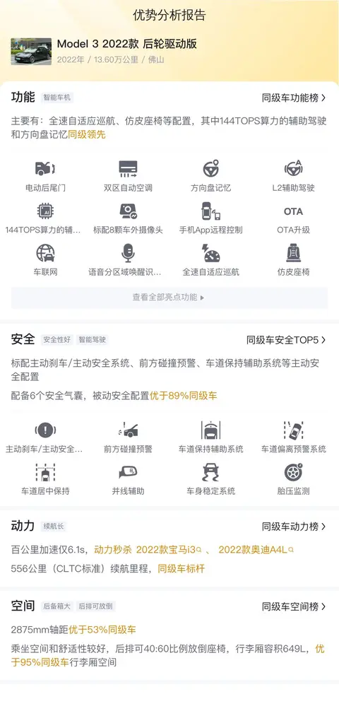 全球首富马斯克一直致力于打造一款“平民跑车”,让普通人也能享受到科技带来的出行乐趣。而Model 3(图片|配置|询价)正是这一理念的完美呈现。它不仅继承了特斯拉一贯的环保理念,还融入了众多前沿科技,让驾驶变得更加智能、安全。Model 3 2022款 后轮驱动版在保持高品质的同时,还不断刷新着自己的性能和智能水平。今天,我们就为您带来一辆二手Model 3 2022款 后轮驱动版,让您亲身感受这份科技魅力。