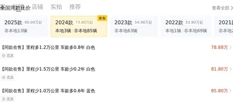 该车于2024年11月在成都上牌,至今行驶里程仅为1.8万公里,车源地及车牌地均为成都,未曾有过过户记录,属于一手车源。本车新车指导价94.8万,现二手报价81.86万,相较于新车价格便宜了12.94万,车身颜色为银灰色。