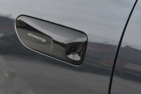 再看车身侧面,零跑 C10 是标准的三厢 SUV 轮廓,线条流畅自然,从车头一直延伸到车尾,没有多余的棱角,看起来很协调。前后轮拱和车门下沿都有凸起的棱线,这些棱线让车身侧面更有力量感,不会显得过于臃肿。电动调节的外后视镜用起来很方便,调节角度精准,而且还能加热,在雨天或者雾天的时候,镜子上不容易起雾,保证了良好的视野。隐藏式门把手是个很讨喜的设计,平时不使用的时候会和车身融为一体,不仅提升了车辆的整体美感,还能降低风阻,对提升续航有一定的帮助。当你靠近车辆或者用钥匙解锁的时候,门把手会自动弹出,仪式感满满。