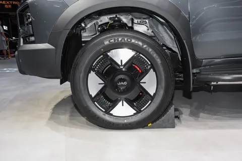外观方面,悍途PHEV延续悍途燃油版主要设计,前脸配备分体式前灯组和大尺寸黑色前格栅,细节差异在于JAC车标调整为代表新能源车的蓝色配色,并取消了前保险杠的红色仿拖车钩元素。同时,该车配备新造型的铝合金轮辋,具有平面化低风阻造型风格,轮胎规格为265/60 R18。