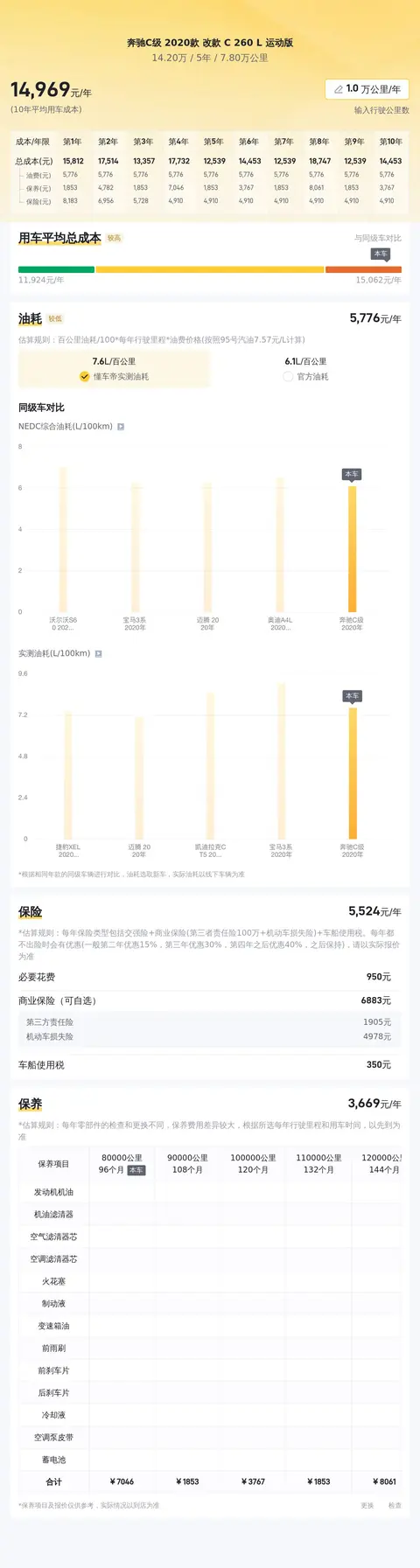 基于懂车帝大数据分析,当前市场上类似车型的二手车价格区间大致位于15.06万元至18.22万元之间。需注意的是,具体成交价将受车辆状况等因素的重要影响。关于用车成本方面,经估算,这辆奔驰C级运动版的年均综合用车成本约为1.5万元,但这一数字可能会根据车主具体使用情况而有所变动。