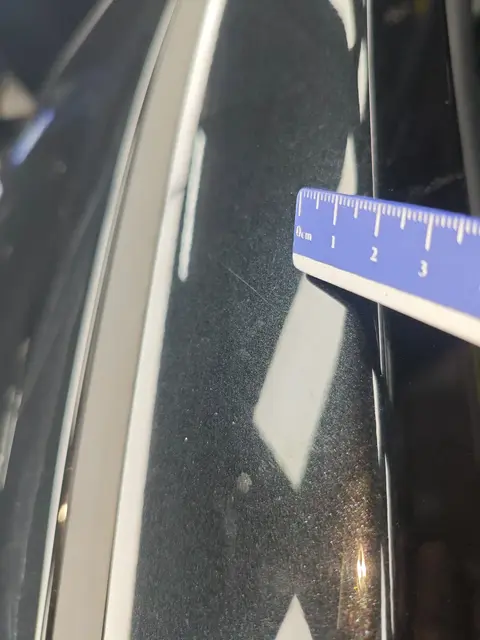 右C柱封边有划痕,看不清具体状况,需查看实物,但一般划痕不会对车辆安全结构造成影响。