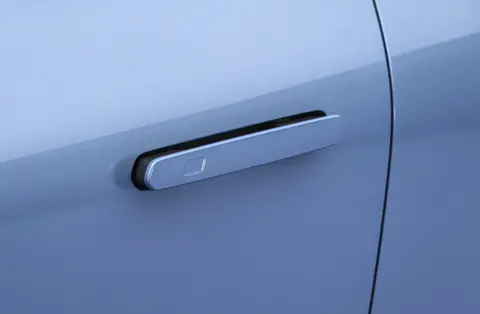 这次改款前脸换了个新的包围,下进气口面积大了一些,中间加了黑色装饰条横着贯穿整个车头。实车拍到的是个晴空蓝涂装,官图里还有鎏光金的新颜色。侧面还是隐藏门把手,尾部扩散器造型稍微调了调,但整体跟老款差不多。