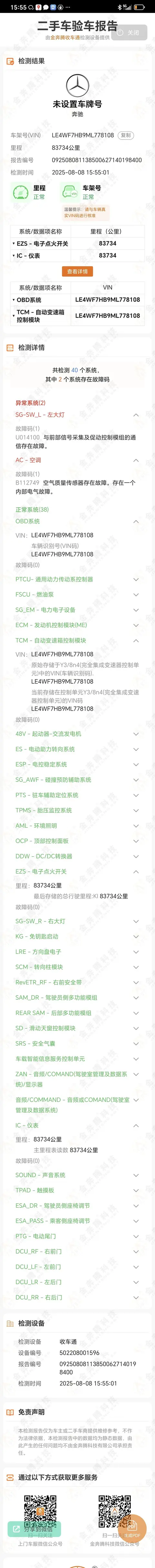 车况对于二手车购买决策至关重要。在选择二手车时,车况的好坏往往直接影响着车辆的安全性、耐用性和维修成本。因此,了解一辆二手车的真正状况变得尤为重要。今天,我们将深入剖析这辆二手奔驰C级的各项检测细节,让您全面了解这辆车的车况信息。希望这些信息能帮助您做出明智的购买决策。