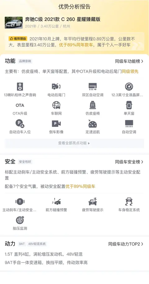 综上所述的新车含税价、用车成本、市场行情、优势分析、同款比价等数据仅供参考。在配置部分,因为二手车非标品,车辆可能会存在配置改装的情况,具体车况信息需要线下结合车辆实际情况进行综合参考。