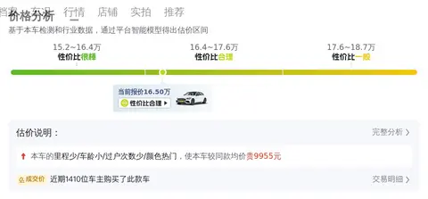最后,综合这台车的车况、配置、空间等素的相关信息,我们通过懂车帝的大数据分析,给出这台车的市场售价合理区间是15.02万至18.22万,当然具体的售价价格,还是跟车辆的车况、里程、年限、以及过户次数有直接关系。