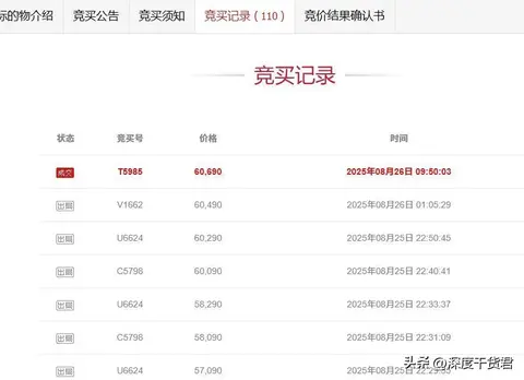 说到拍卖价格,大家伙可能会更吃惊。毕竟,报废处理的标准一般都比较死板,这次起拍价就才10290块钱,妥妥地把它当破铜烂铁处理。可别小看这数字,正因为低,所以吸引了一大波人报名参与。最终一共加价了110次,现场气氛热烈,短短几个小时就把价格顶到了60690元,真是让人眼镜都碎了。有人在旁边悄悄算了笔账,溢价率高达489.8%,这种事平时谁敢想啊?