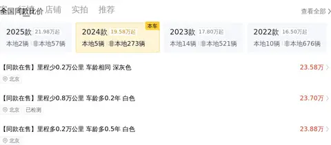 这辆奔驰C级 2024款 改款 C 260 L 运动版,新车含税价为38.79万,现在的二手车报价是23.6万,不到一年的车,有15万左右的差价。