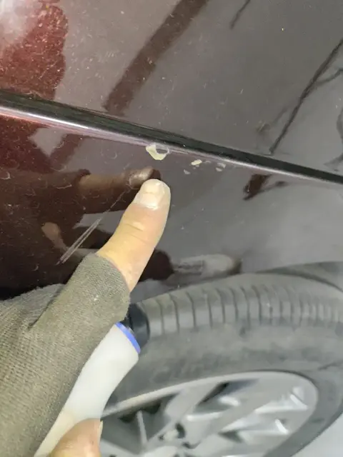 在外观检测部分,这辆别克GL8整体表现良好,有两处瑕疵值得注意。首先是左后翼子板有轻微的变形,这可能是之前车辆在行驶过程中与其他物体发生轻微碰撞所致。但从变形的程度来看,应该未伤及内部的结构件,否则不会通过后续的事故检测。其次是右后翼子板有较长的划痕,但并未伤及底漆,日常使用中这些小瑕疵在所难免,抛光修复即可。