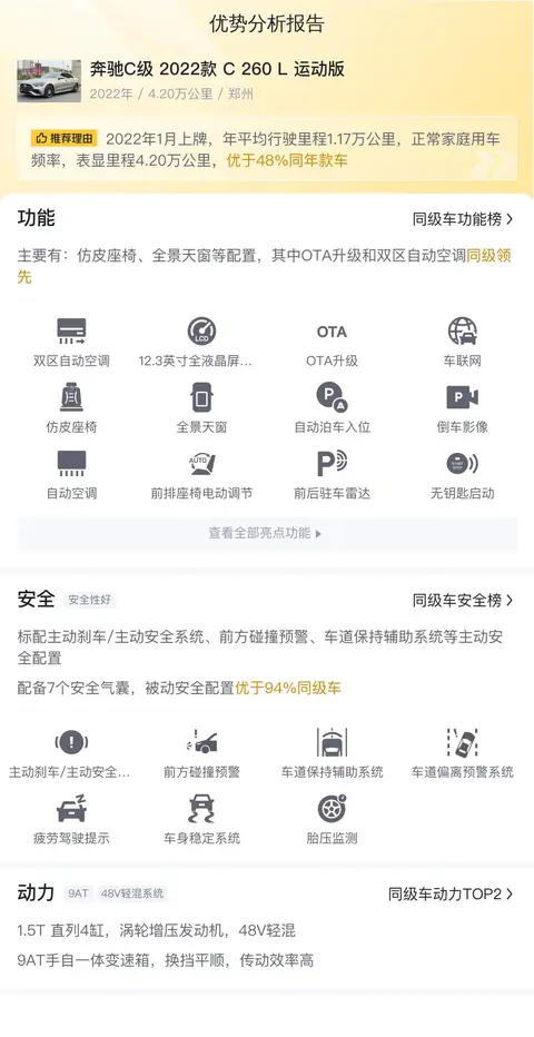 综上所述的新车含税价、用车成本、市场行情、优势分析、同款比价等数据仅供参考。在配置部分,因为二手车非标品,车辆可能会存在配置改装的情况,具体车况信息需要线下结合车辆实际情况进行综合参考。