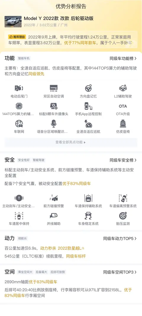 综上所述的新车含税价、用车成本、市场行情、优势分析、同款比价等数据仅供参考。在配置部分,因为二手车非标品,车辆可能会存在配置改装的情况,具体车况信息需要线下结合车辆实际情况进行综合参考。