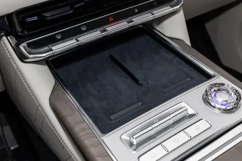 极氪9X副仪表台采用大面积木纹饰板,还配备有水晶多媒体旋钮。车辆内侧门板配备有双层氛围灯,其中下层灯带由多组竖向布局的光源排列组成。另外,极氪9X前排座椅控制面板位于车门位置,并且提供座椅通风、加热、按摩、记忆等控制按键。