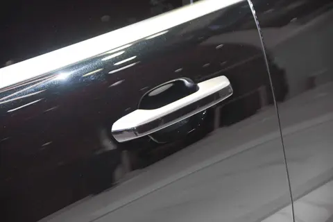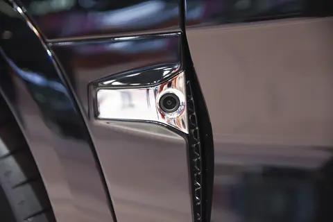 车身侧面,极氪9X的D柱向车窗上下两侧横向延伸,形成“C”字造型,并对A柱进行黑化处理,官方称之为“飞桥游艇式车顶”。新车采用常规造型的车门把手,翼子板和外后视镜下方配有侧视摄像头。此外,实拍车型搭载有22英寸镜面锻造轮辋,其中心或配有悬浮式车标,并配备轮胎规格为285/45 R22的倍耐力P ZERO轮胎。