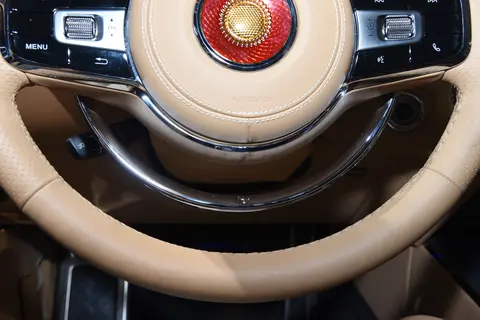 内饰方面,2026款红旗国耀提供榛栗棕/黑、亚麻米/柔光棕、红旗红/黑和琉璃蓝/莹玉白四款双色搭配,内饰设计和功能布局与2022款一致。配置方面,2026款红旗国耀相比2022款增加远近光自动切换、外后视镜片集成盲区探测报警灯、高级巡航、自动紧急刹车和防污染传感器。全系标配装备包括仿麂皮顶篷、簇绒地毯、后门电动遮阳帘、第二排座椅加热/通风、14扬声器音响、4温区自动空调、电动侧踏板等。