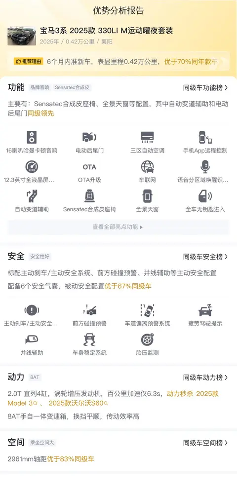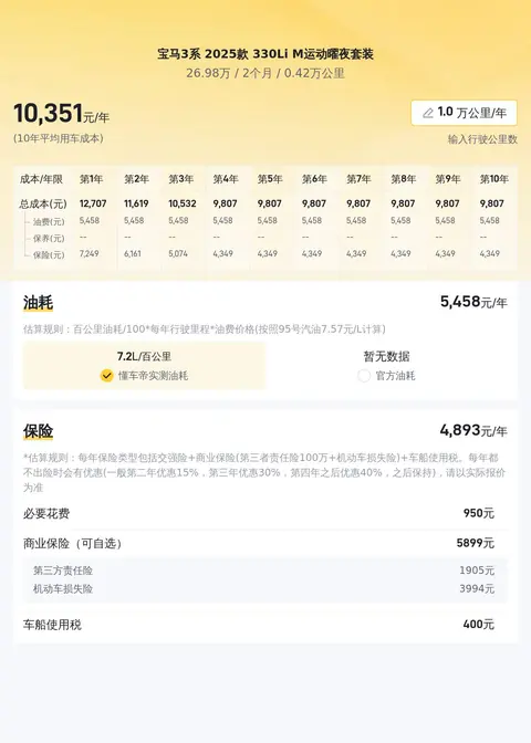 接下来我们看看这台宝马3系 2025款 330Li M运动曜夜套装的市场行情和用车成本。