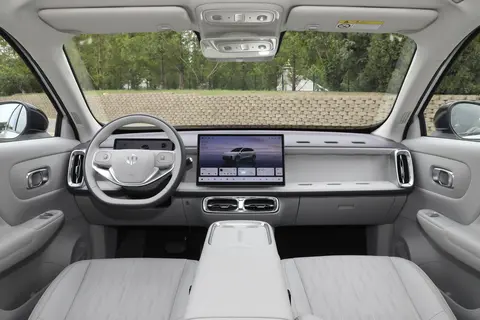 再看看深蓝 S05 的内饰,科技感同样很突出。中控台悬浮式设计很有层次感,方向盘造型独特,握感也还不错。15.4 英寸中控屏尺寸不小,显示也清晰。其搭载高通骁龙 8155 芯片,配合 16GB 车机系统内存,运行流畅不卡顿,无论是导航、多媒体播放还是多任务切换都十分顺滑。车机内置语音识别功能,只需简单说出指令,就能完成导航设置、音乐播放控制等操作,驾驶时双手无需离开方向盘,大大提升了行车安全性。同时,支持 4G 网络、Carlink/HUAWEI HiCar / 原厂原机手机互联,能轻松将手机上的应用投屏到中控屏,还可开启 Wi-Fi 热点,满足全车人的上网需求。不过,它取消了传统仪表盘,所有车辆信息都集成在中控屏和抬头显示上。但不得不说,深蓝 S05 的内饰设计很有未来感,智慧飞行舱环抱式座舱设计,让人感觉仿佛坐在飞行器驾驶舱里,挺有意思的。座椅采用高品质仿皮材质,支撑力也挺好,主 / 副驾座椅支持前后移动、靠背角度和头枕的调节功能。