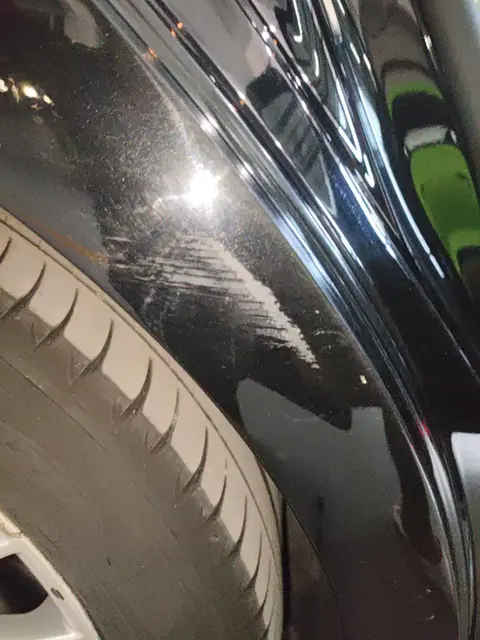 在外观检测中,左后翼子板有喷漆修复的痕迹,右后翼子板有划痕。